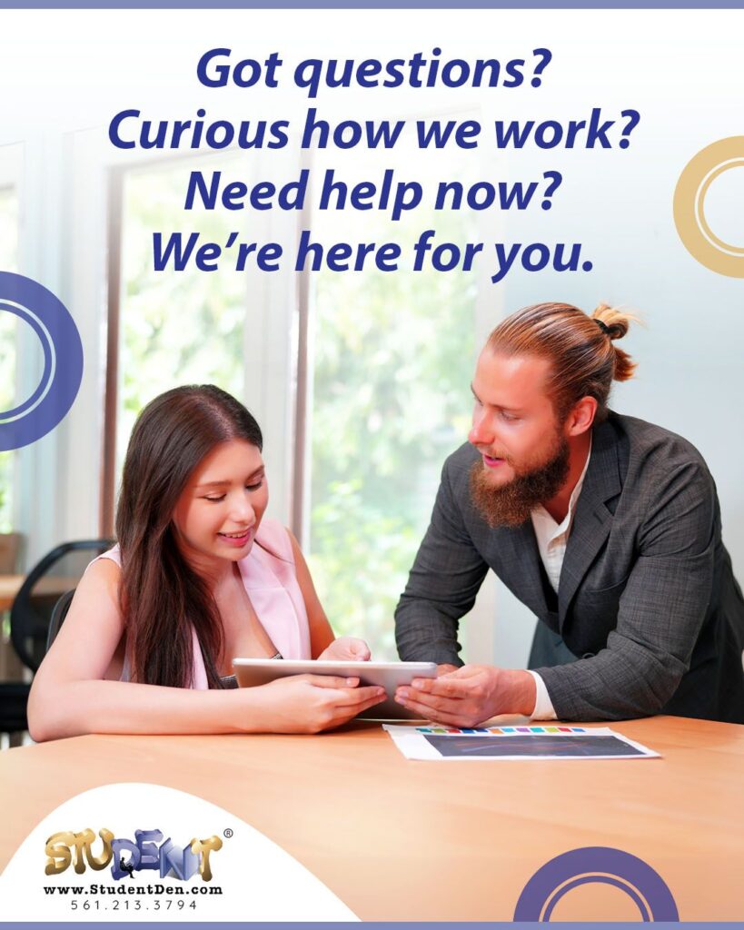 Ready to transform academic pressure into calm, confident success? Beyond the tips, our educational specialists offer personalized coaching and proven strategies to help your child thrive emotionally and academically. Contact us today at 561.213.3794 and start following @thestudentden on Instagram for more tips.